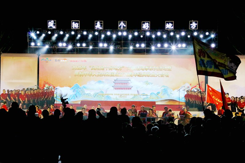 9月21日晚,2025年“凤阳是个好地方”文旅活动季系列活动暨庆祝中华人民共和国成立76周年经典歌曲大合唱活动在洪武门广场举行。