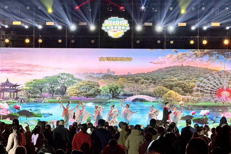 比赛现场,四支队伍同场竞技,上演了一场“舌尖上”的巅峰对决,用过硬的技术和创新的精神表达了对烹饪的热爱。活动现场不仅设置有激烈的比赛区,还规划了美食品鉴区、非遗展示区、特色农产品展销区及互动体验区,舞台上还进行着文旅推荐以及具有地方特色的节目演出,通过“赛、展、演、游、购”五大维度,构建了一场全民参与、深度体验的“美食文化嘉年华”。广大市民游客闻香而至,或驻足观看高手过招,或排队品尝特色美食,或参与互动游戏,现场欢声笑语交织,一派祥和喜庆的景象。