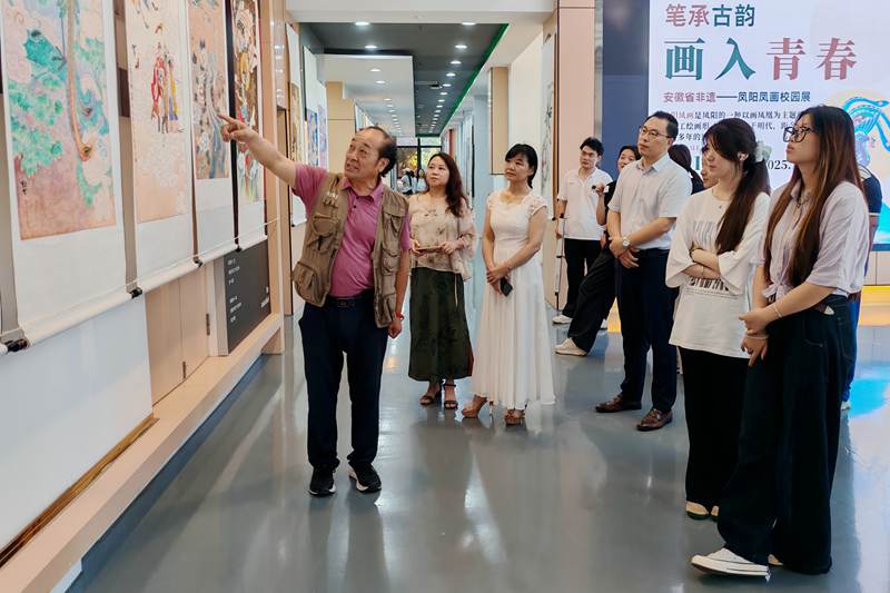 10月9日,“笔承古韵,画入青春”凤阳凤画校园展在芜湖职业技术大学艺术传媒学院举办。芜湖职业技术大学艺术传媒学院院长江保锋和学院部分师生,凤阳县文联负责人,凤阳县凤阳凤画研究会负责人和部分会员参加开幕式并参观了展出作品,部分人员还参加了凤阳凤画学术研讨会。