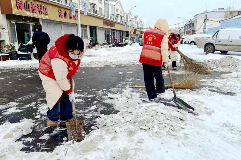 针对乡镇道路分散、坡度较大、结冰情况突出的实际问题,凤阳创新采用“机械除雪+人工清扫”相结合的作业模式,精准推进除雪工作。大型除雪设备在乡村主干道开展集中作业,快速清除大面积积雪;志愿者队伍紧随其后,对道路边角、背阴路段等机械作业盲区进行了细致清扫,并及时清运两侧积雪,从源头杜绝二次结冰隐患。同时,志愿者们格外关注偏远村组的独居老人、困难群众等特殊群体,主动上门清扫院落及门前道路,全力保障特殊群体出行安全,用贴心服务筑牢民生保障防线。