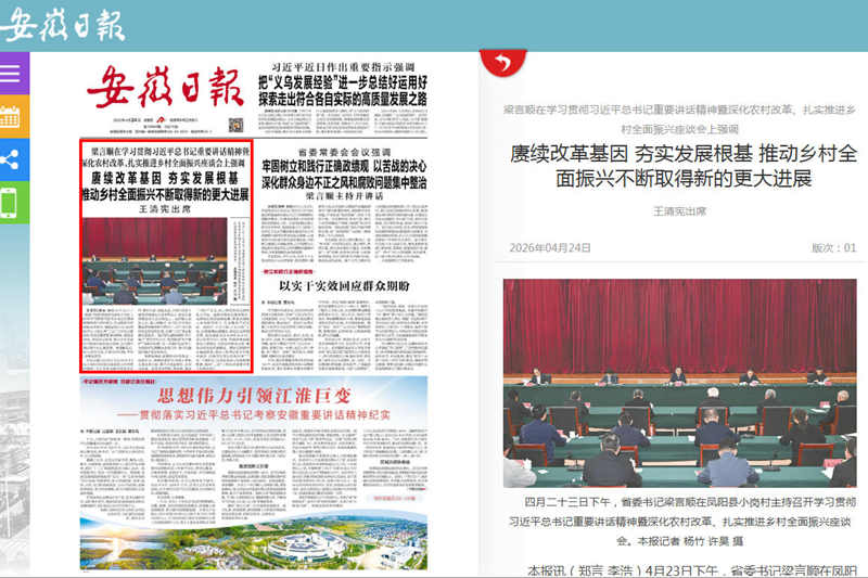 【安徽日报】赓续改革基因 夯实发展根基 推动乡村全面振兴不断取得新的更大进展