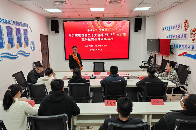 11月28日,滁州市文明家庭陈华斌为本地几家网站负责人宣讲了党的二十大精神,分享了身边的好故事,传递了正能量,“e”起做网络文明的传播者、践行者、守护者。
