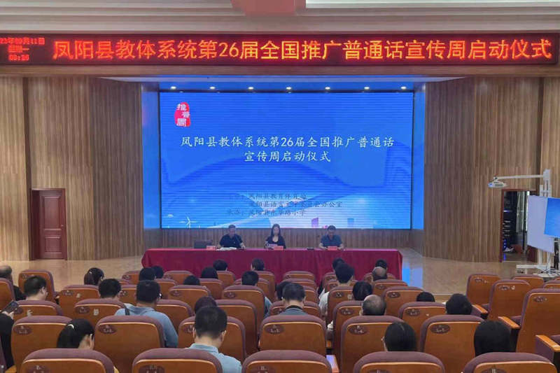 9月11日上午,凤阳县教体系统第26届全国推广普通话宣传周启动仪式在东华路小学举行。本届推普周的主题是“推广普通话,奋进新征程”。县语委办工作人员,全县省、市级语言文字规范化示范校(园)的语言文字工作相关负责人以及东华路小学全体师生参加启动仪式。