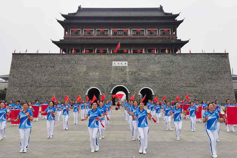 活动现场,有的志愿者手持五星红旗、协会会旗迎风挥动,此起彼伏跃动的中国红,形成了一片亮丽的“红色海洋”;有的志愿者挥舞手中的鼓棒有节奏地敲击着大鼓,“击”响中秋团圆的幸福,“鼓”动国庆的欢乐;还有的志愿者拿着凤阳花鼓轻舞其中,音乐的韵律,舞蹈的节奏,都在花鼓中闪耀,志愿者们个个情绪高昂,以良好的精神风貌向祖国献礼,表达对祖国的深情和祝福,抒发“强国复兴有我”的坚定和自信,同时也为来往的市民带来了一场听觉和视觉盛宴。