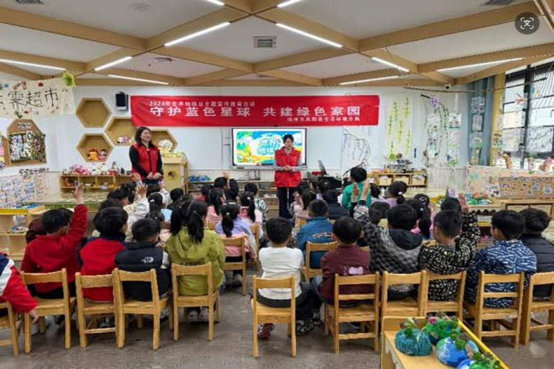 活动现场,志愿者结合幼儿认知特点,通过科普动画、趣味课件,用生动易懂的语言,向孩子们科普了世界地球日由来、地球生态功能及垃圾分类、节约用水等环保知识,结合生活案例讲解了环境问题的危害,引导孩子们树立“保护地球就是保护自己”的理念。随后,在志愿者与幼儿园老师的悉心指导下,环保手工创作环节,孩子们利用废旧材料制作地球作品,践行了“变废为宝”的环保理念。志愿者还向孩子们发放了宣传手册和小礼品,鼓励大家争做“环保小卫士”。活动全程氛围热烈温馨,师生、志愿者们欢聚一堂,合影留念定格美好瞬间。