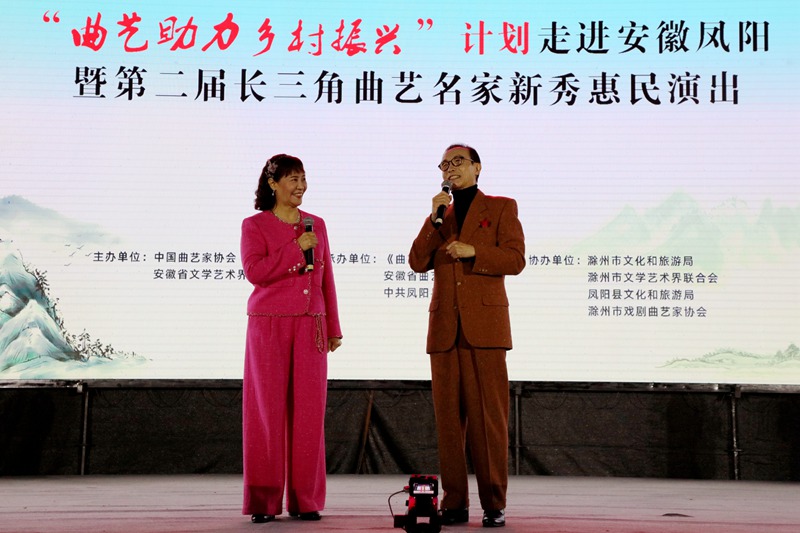 11月14日晚,“曲艺助力乡村振兴”计划走进安徽凤阳暨第二届长三角曲艺名家新秀惠民演出在凤阳洪武门广场举行。演出特别邀请了著名主持人鞠萍与苏州评话名家吴新伯联袂主持,为当地群众呈现了一场精彩纷呈的曲艺盛宴。