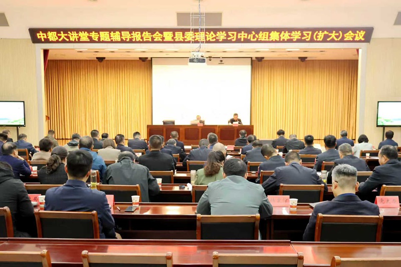 11月14日下午,凤阳县召开中都大讲堂专题辅导报告会暨县委理论学习中心组集体学习(扩大)会议。县委副书记、县长王俊卿,县人大常委会主任成学斌,县政协主席常昕,县委副书记李国金,安徽小岗干部学院常务副院长刘吉昌,安徽机电工程学校党委书记王其昌, 副书记、校长郭仕荣,县领导程洪全、陈长静、邱荆枫、李锦柱、徐玉松、王棉出席会议,县委理论学习中心组成员参加会议。
