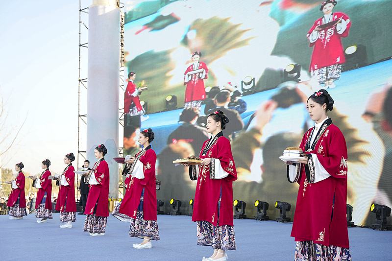 11月28日下午,为期2天的第二届“洪武宴”烹饪大赛及“凤阳味道”美食文化节在如意河畔、洪武门前举行。