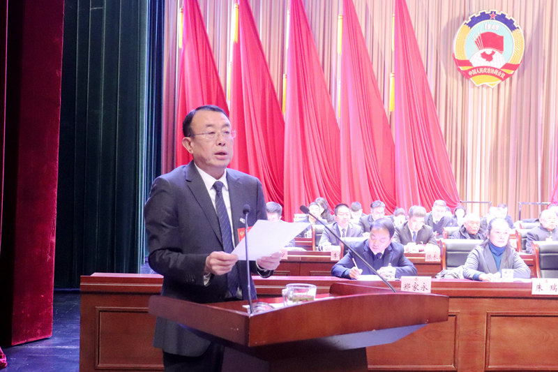 县政协主席常昕代表政协十一届凤阳县委员会常务委员会向大会报告工作。报告分2025年工作回顾和2026年主要任务两个部分。