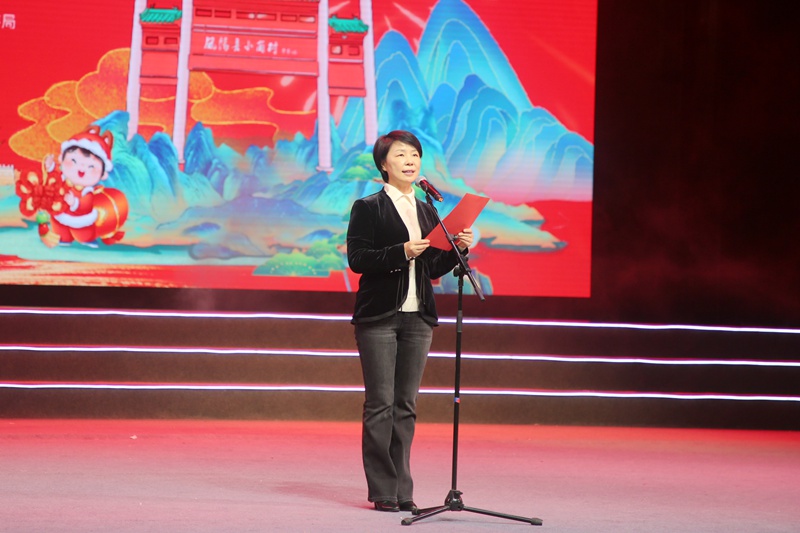焦艳在致辞中说,在这万家团圆、喜迎佳节的美好时刻,我谨代表凤阳县委、县政府,向全县人民和所有关心支持凤阳发展的各界友人,致以诚挚的问候和新春的祝福,向节日期间依然坚守在工作一线的广大干部职工、驻凤部队、武警官兵和公安干警,表示亲切的慰问和崇高的敬意。2025年是凤阳发展历程中砥砺奋进、硕果盈枝的一年。全县上下坚持以习近平新时代中国特色社会主义思想为指导,锚定“站稳全省前十”奋斗目标,同心同德、实干争先,用汗水浇灌收获,以奋斗铸就辉煌,交出了一份鼓舞人心、催人奋进的高质量答卷。这一年,我们向稳而进,以拼搏夯实发展“高度”; 这一年,我们向美而兴,以品质激活文旅“亮度”; 这一年,我们向暖而行,以初心传递民生“温度”。