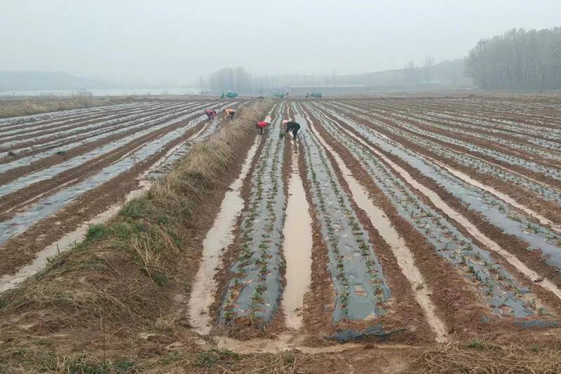 近日,走进殷涧镇卸店村菊花种植基地,工人们正穿梭在田垄间,整地、盖地膜、栽种菊花秧苗......现场分工明确,忙而有序,放眼望去,一派忙碌的景象。