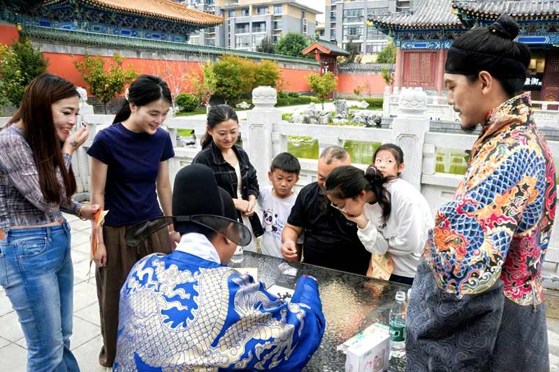 走进历代帝王庙,一场别开生面的蹴鞠比赛正在进行。参赛选手们在鼓声助威下展开激烈角逐,皮球在选手们脚间灵活传递,让游客们直观地感受到古代体育运动的魅力。印章打卡活动最受游客们的欢迎,现场设有投壶、月光纸、下棋、木射、捶丸等多项古代趣味项目,完成任务即可盖章,完成所有打卡可获得对应奖品,现场观众呼声不断,纷纷踊跃参与。国庆中秋假期,该景区还将陆续推出合香珠手工研学课、传统礼仪研学课、中秋主题DIY月饼体验课以及以“大明策论”“武将机缘”“嫦娥送福”等为主题的NPC互动活动。