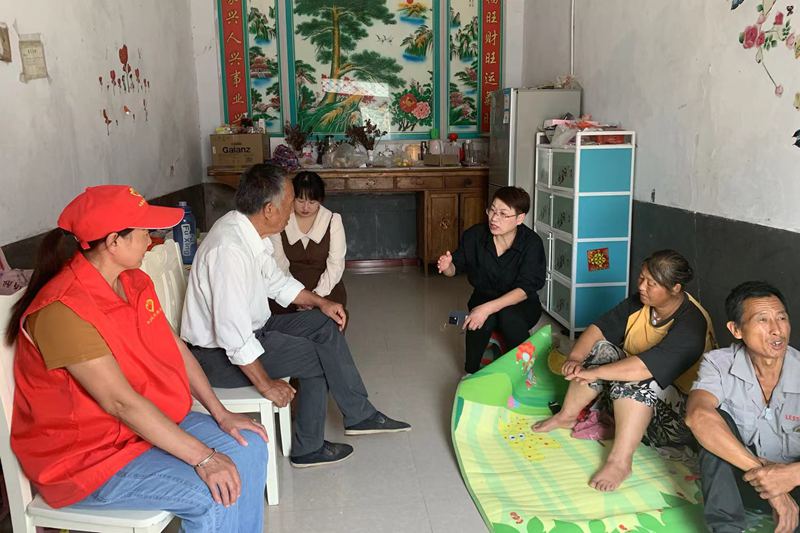 许丽在居民家中调解家庭矛盾