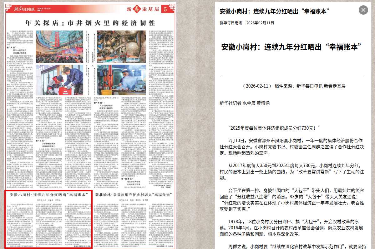【新华每日电讯】小岗村:连续九年分红晒出“幸福账本”