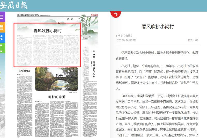 【安徽日报】春风吹拂小岗村