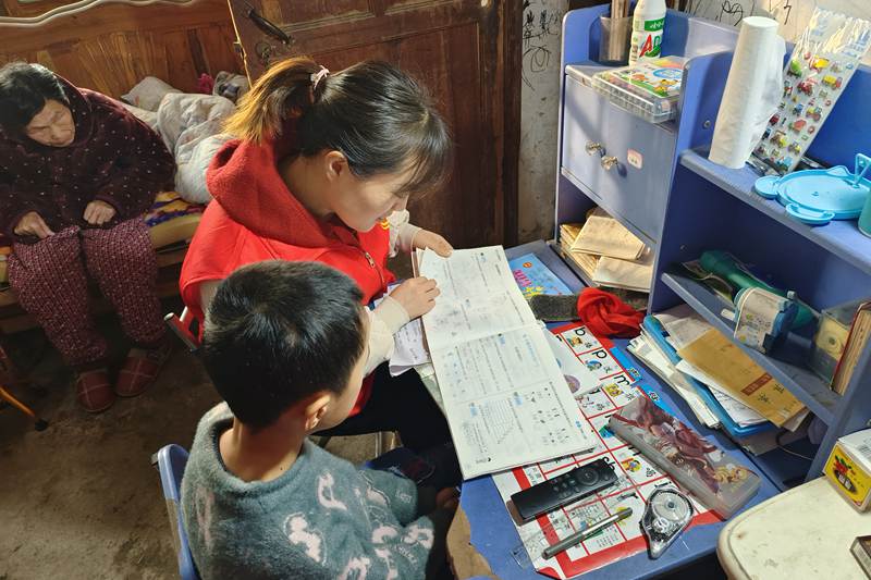 爱心公益协会志愿者入户为困境儿童辅导作业