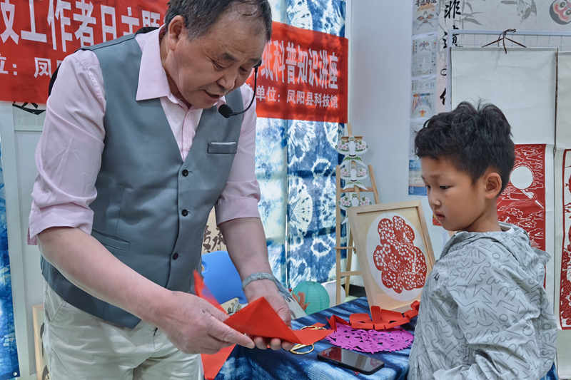 本次活动特邀凤阳凤画传承人、濠州剪纸代表性传承人唐家善老师现场授课。活动中,唐老师系统讲解了剪纸艺术的历史渊源、分类标准及文化内涵,结合凤阳本地民俗,展示了凤阳凤画、现代剪纸等部分优秀作品,阐释其背后的科学原理,凸显非遗技艺中的智慧结晶。